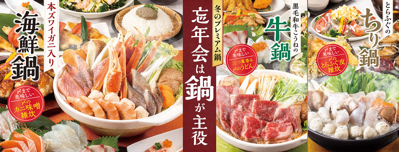 【忘年会は鍋が主役】3種のプレミアム宴会コース