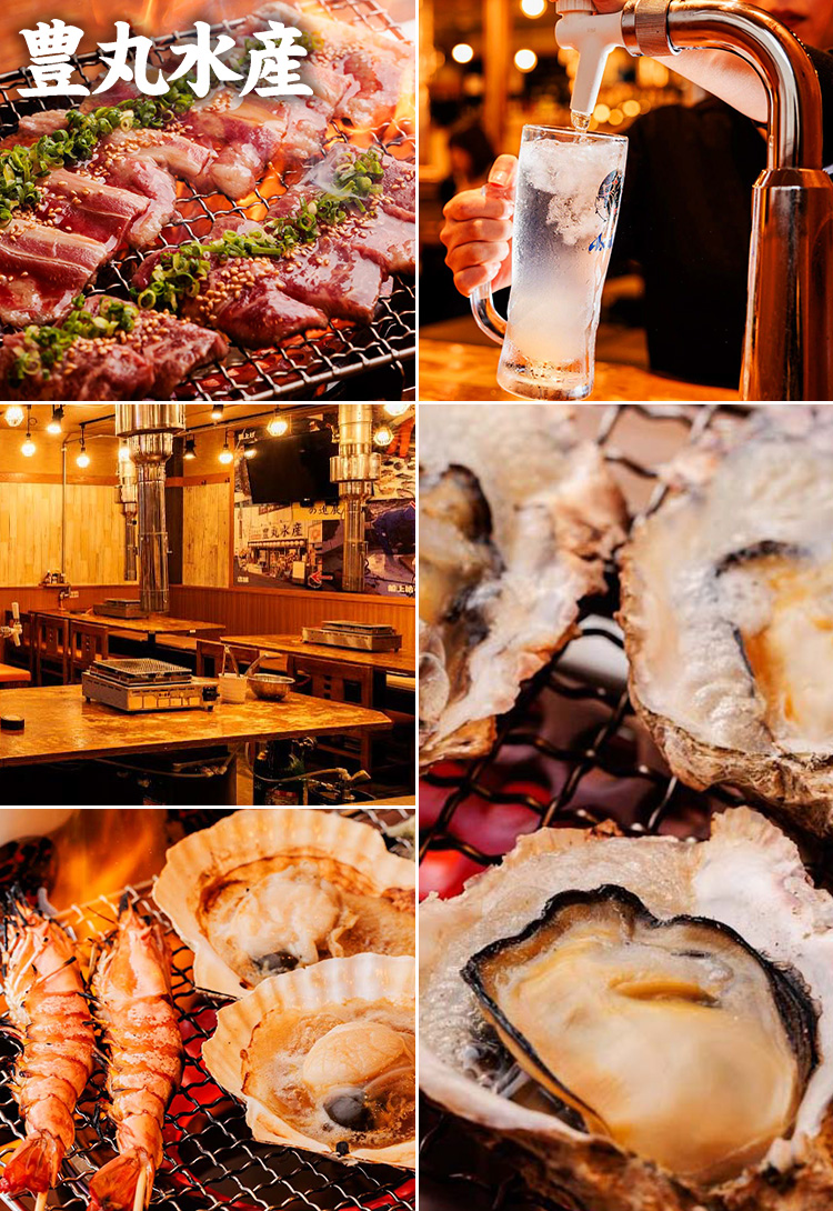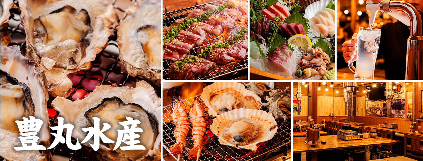 鮮度や産地にこだわる「豊丸水産」の海鮮料理をお楽しみください。飲み会やご宴会をはじめ、女子会、お誕生日・記念日のお祝いなど、様々な用途に合わせてご利用いただけます。豊富なアラカルトやドリンクをご用意しております。また当店は店内生簀から新鮮な活魚をお届けします!その日の入荷でさばきたてが食べられます!皆さまのご来店をお待ちしております。